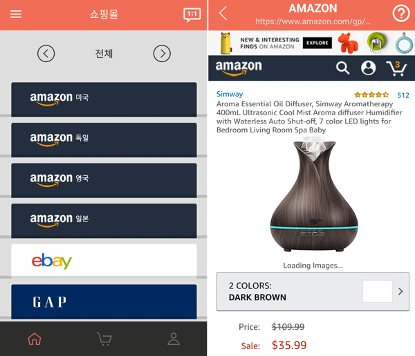 원하는 쇼핑몰을 클릭하면 쉽게 접속하여 원하는 상품을 찾을 수 있습니다. 아마존 직구 방법에 대해서 알아보는 시간이니, 저는 미국 아마존에 들어가서 이 어여쁜 디퓨저를 골라보았습니다!