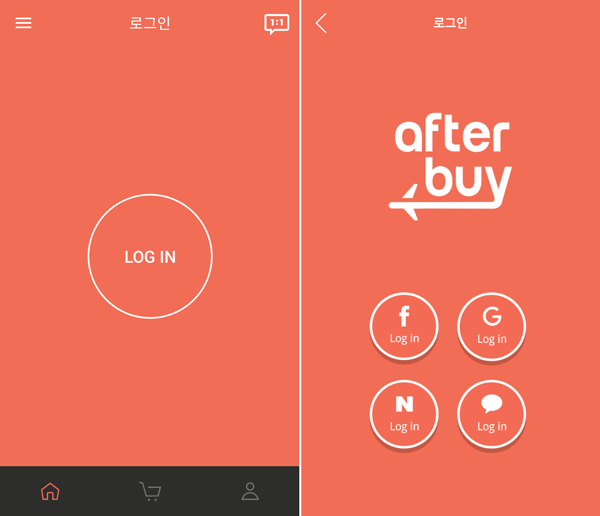 우선 애프터바이 앱을 설치합니다! 애프터바이 앱은 iOS 앱스토어, 안드로이드 플레이스토어 모두에서 찾으실 수 있어요.
