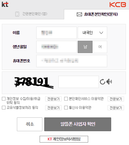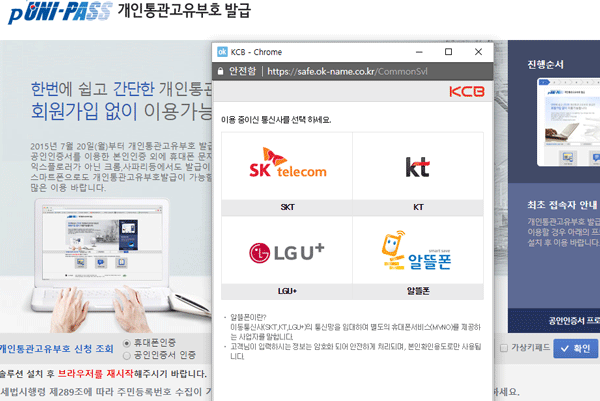 이름과 주민등록번호를 입력하고 확인을 누르니 위와 같은 새 창이 떴어요.