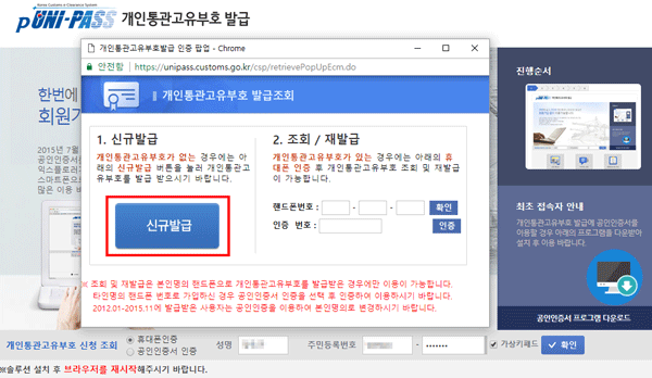 그리고 아까 봤던 신규발급을 다시 눌러주시면!