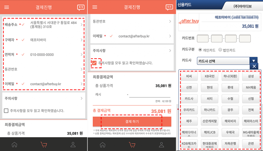 해외직구이지만 국내쇼핑처럼 손쉽게 결제 완료!