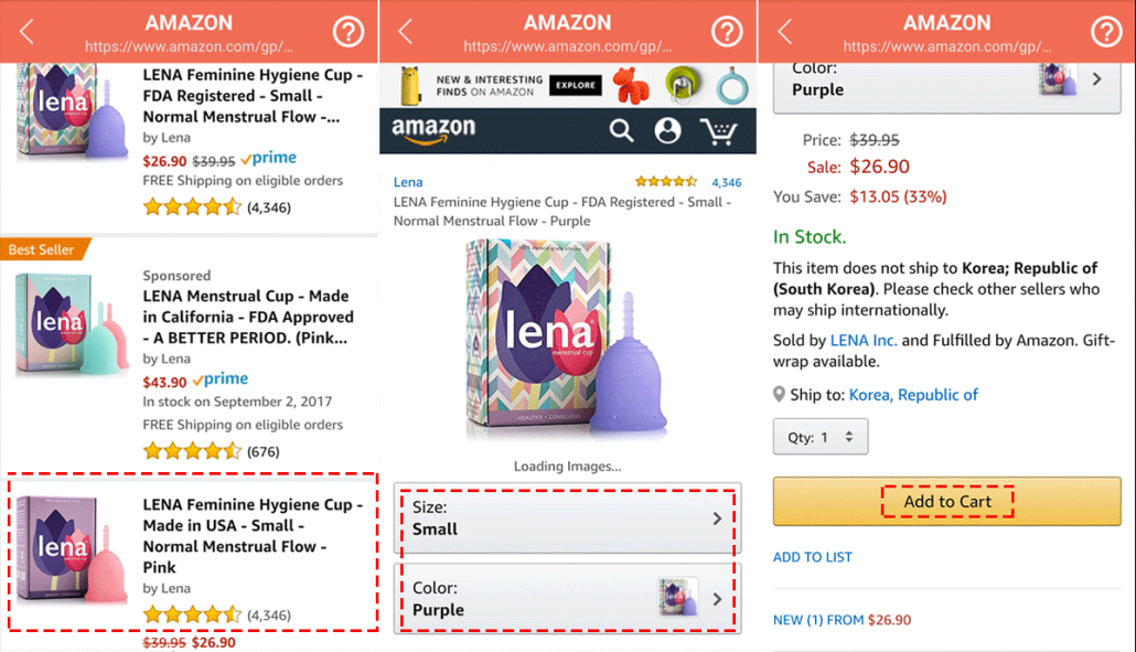 아마존 레나컵 직구 방법! 생각보다 정말 간단하죠? 생리대는 불편하고 불안한데, 직구가 어려워 생리컵을 구입하지 못하셨던 분이라면, 이제 애프터바이를 통해 쉽게 생리컵 직구를 해보세요!