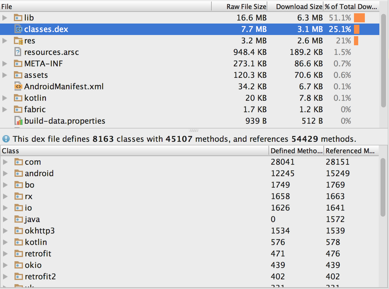 일반적으로 메소드 참조 수는 사용하는 라이브러리의 수와 앱을 구성하는 코드의 수에 비례하여 증가합니다. 따라서 큰 규모의 앱을 작성하다 보면 앞의 메소드 제한을 훌쩍 뛰어넘게 됩니다.