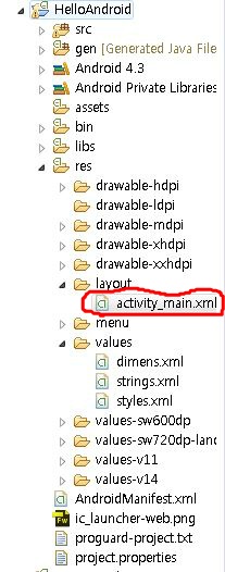 안드로이드의 화면은 /res/layout 밑에 xml 파일로 정의되어 있다.