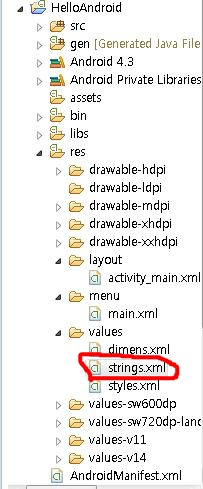 문자열 리소스는 기본적으로 /res/values 밑에 strings.xml에서 관리된다.