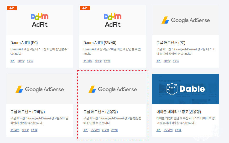 6.티스토리 광고형태 선택