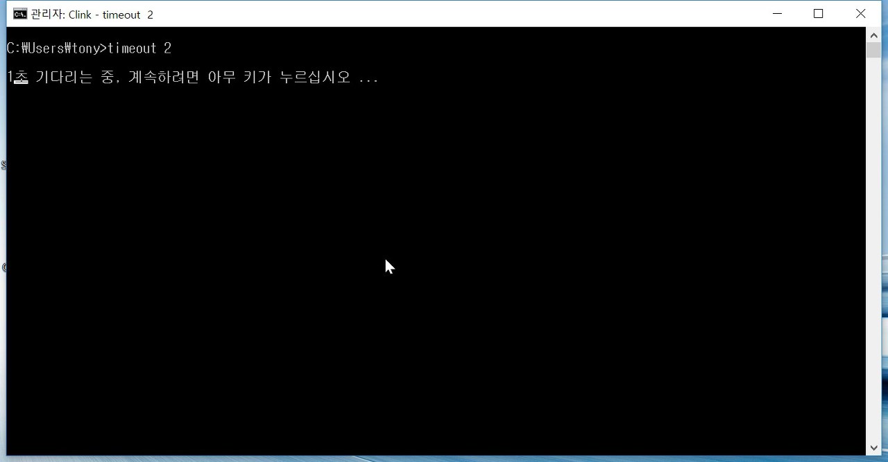 timeout 2 와 같이 명령하면 아래와 같이 “계속하려면 아무 키나 누르십시오” 라고 메시지가 나타나게 되고~