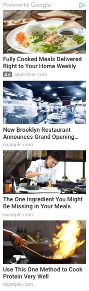 다음 코드 예에서는 총 4개의 추천을 표시하는 행 4개와 열 1개를 사용해 일치하는 콘텐츠 단위를 생성하는 방법을 보여 줍니다.