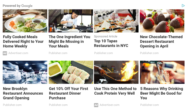 다음은 스폰서 콘텐츠가 있는 일치하는 콘텐츠 단위의 예입니다.