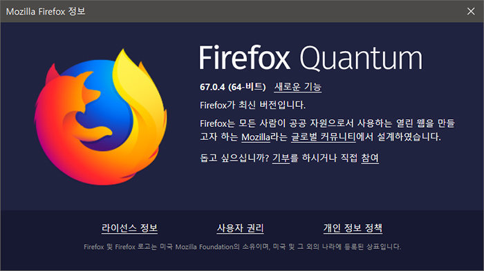 2019.07.09 현재 파이어폭스 포터블 최신 버전(67.0.4)