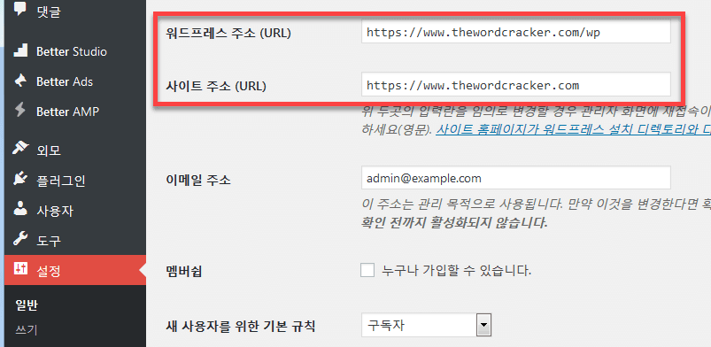 먼저 "워드프레스 주소"와 "사이트 주소"의 차이점을 이해하면 도움이 됩니다.