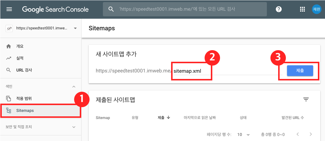 - 색인 > Sitemaps 메뉴로 이동합니다.