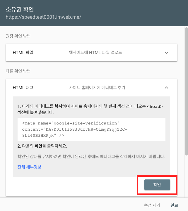 다른 확인 방법의 HTML 태그를 선택하고 나타나는 HTML태그를 복사합니다.