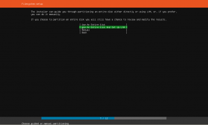 2번째 항목을 선택하여 전체 디스크를 사용하고, 파티션등 세부적인 설정을 할 수 있습니다.