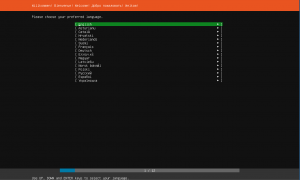 첫 번째로 기본 언어를 선택 합니다. GUI환경이 아니기 때문에 영어로 선택하겠습니다.