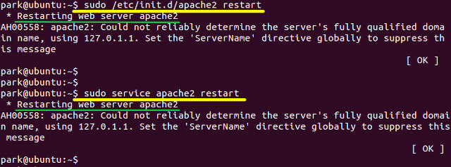 . apache 재시작은 아래 2가지중 아무거나 해도 똑같이 재시작한다.