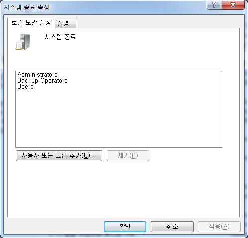 2. 로컬 정책 - 사용자 권한 할당 - 시스템 종료