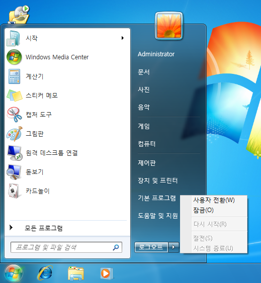 5. 다른 계정으로 로그인 해봤습니다. 가장 강력하다는 Administrator 계정 조차 시스템 종료 권한이 사라졌습니다.