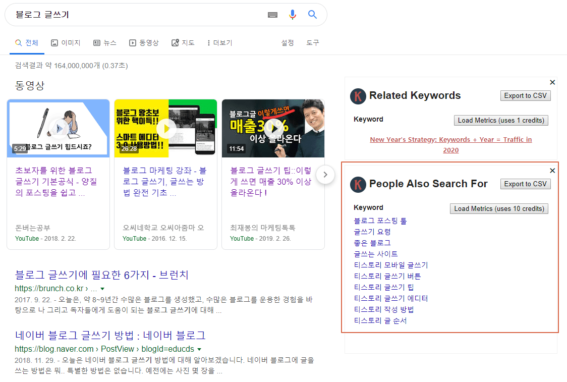 확장 프로그램을 설치하신 뒤, 구글에서 특정 키워드를 입력하게 되면 연관 키워드를 자동적으로 추출해서 보여줍니다.