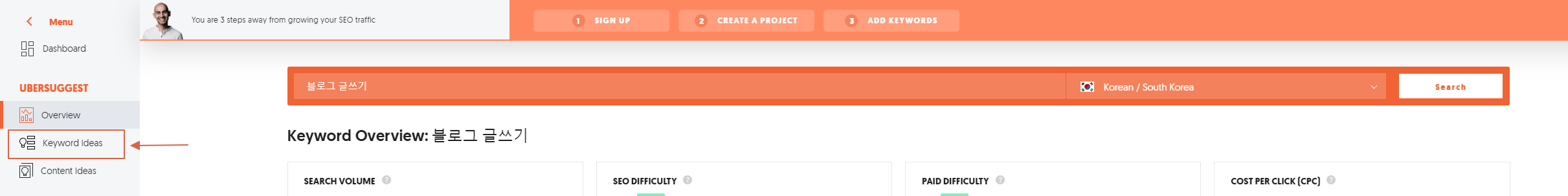 원하는 키워드를 입력하고 우측의 국가는 대한민국으로 변경해줍니다.