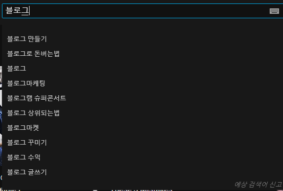 유튜브 검색창에서 검색했을 때 제안되는 키워드들