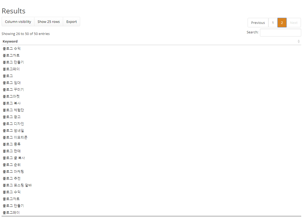 원하는 만큼 키워드를 추출했다면 Stop shitting 을 눌러줍니다.