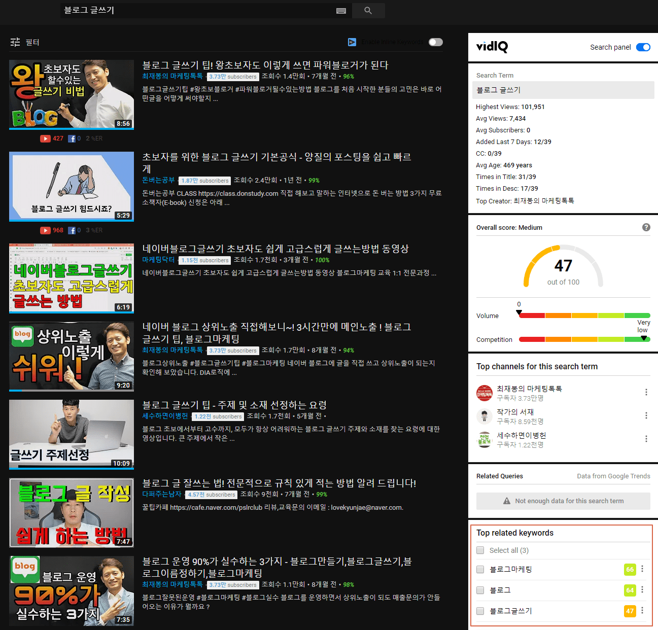 블로그 글쓰기를 주제로 영상을 만드실 생각이라면 그 영상 설명이나 제목에 글쓰기 요령, 글쓰기 팁 같은 키워드들을 넣어볼 수도 있겠죠?
