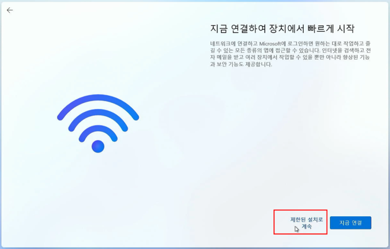 [제한된 설치로 계속] 을 클릭합니다.