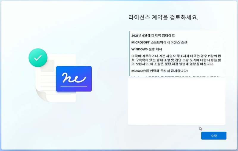윈도우11 버전 22H2 설치 미디어를 MS사이트에서 다운로드 받아 설치를 진행할 때,