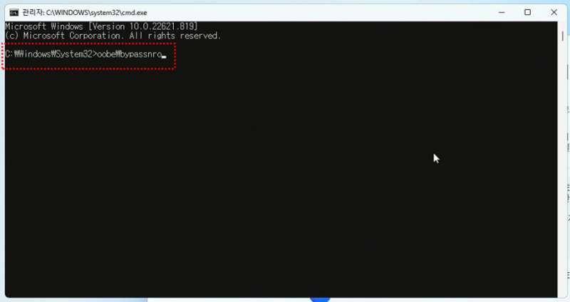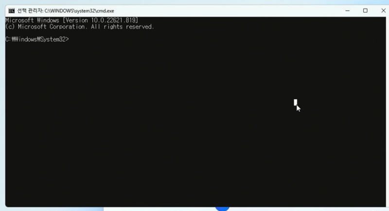 명령 프롬프트(CMD) 창을 1회 클릭 후, 아래 명령어를 입력합니다.