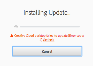 Creative Cloud 데스크탑을 업데이트하지 못했습니다. (오류 코드: 2)
