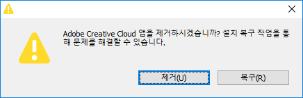 이와 같은 오류가 발생하는 경우에는 아래 단계를 따라 Creative Cloud 데스크탑 앱을 제거한 다음 다시 설치하십시오.