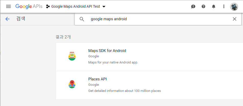4. google maps android를 검색하여 Maps SDK for Android를 선택합니다.