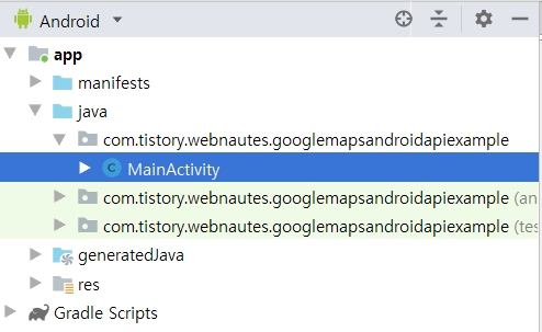 14. Google Maps Android API를 사용할 안드로이드 프로젝트를 준비해놓았다면 패키지 이름을 따로 복사해놓고 15번을 진행합니다.