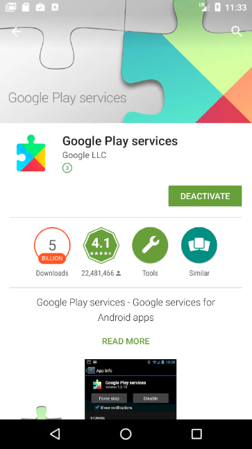 해결하려면 구글 플레이 서비스를 최신 버전으로 업데이트 해야 합니다. 업데이트를 선택합니다.
