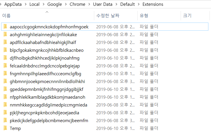 설치된 확장프로그램의 id를 확인하여 디렉토리 내용을 백업한다